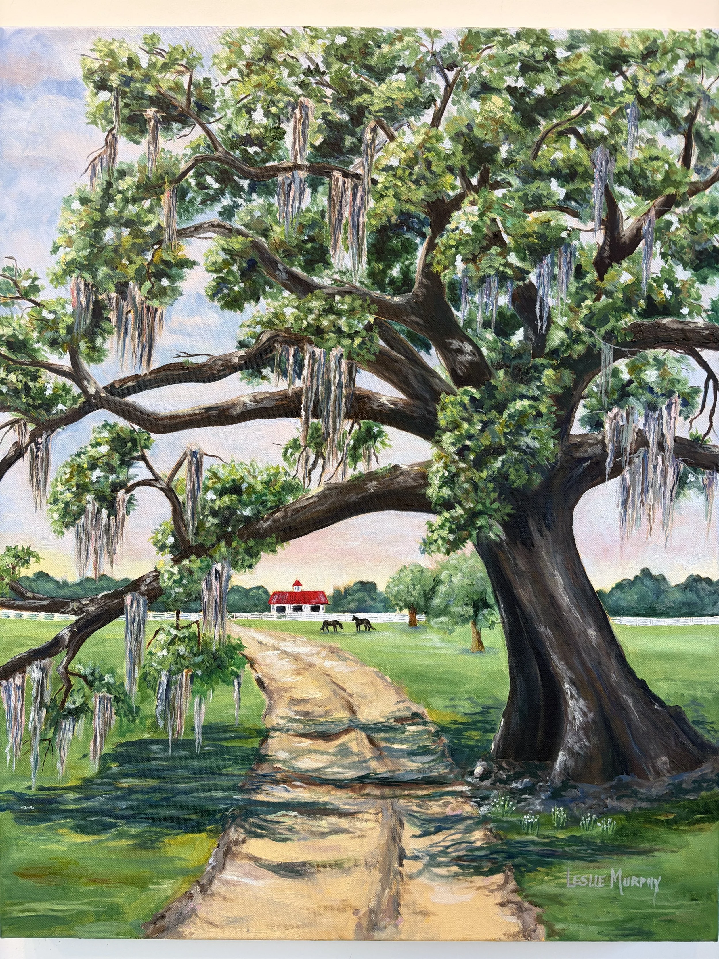 ARTWORK STATEMENT: Inspired by nature’s welcoming majestic oaks on the roadways of the Low Country, they never fail to evoke the peace and tranquility we crave when arriving safely back home.